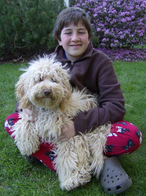 The Authentic Australian Labradoodle is an amazingly sweet, gentle, and loving dog with an intuitive nature, robust health, and a beautiful wavy non-shedding allergy friendly coat. Australian Labradoodles are smart and easily trainable, oftentimes learning things on the very first go-around. They are athletic and energetic and love to romp and play. Australian Labradoodles are very much a people-oriented dog. They are loyal, companionable animals who always want to be involved with their family. They seem to be ever at your side, lying by your feet, resting in your lap, or if you let them, planting kisses all over your face. They make wonderful pets and family dogs, and are well suited for Therapy and Service work.