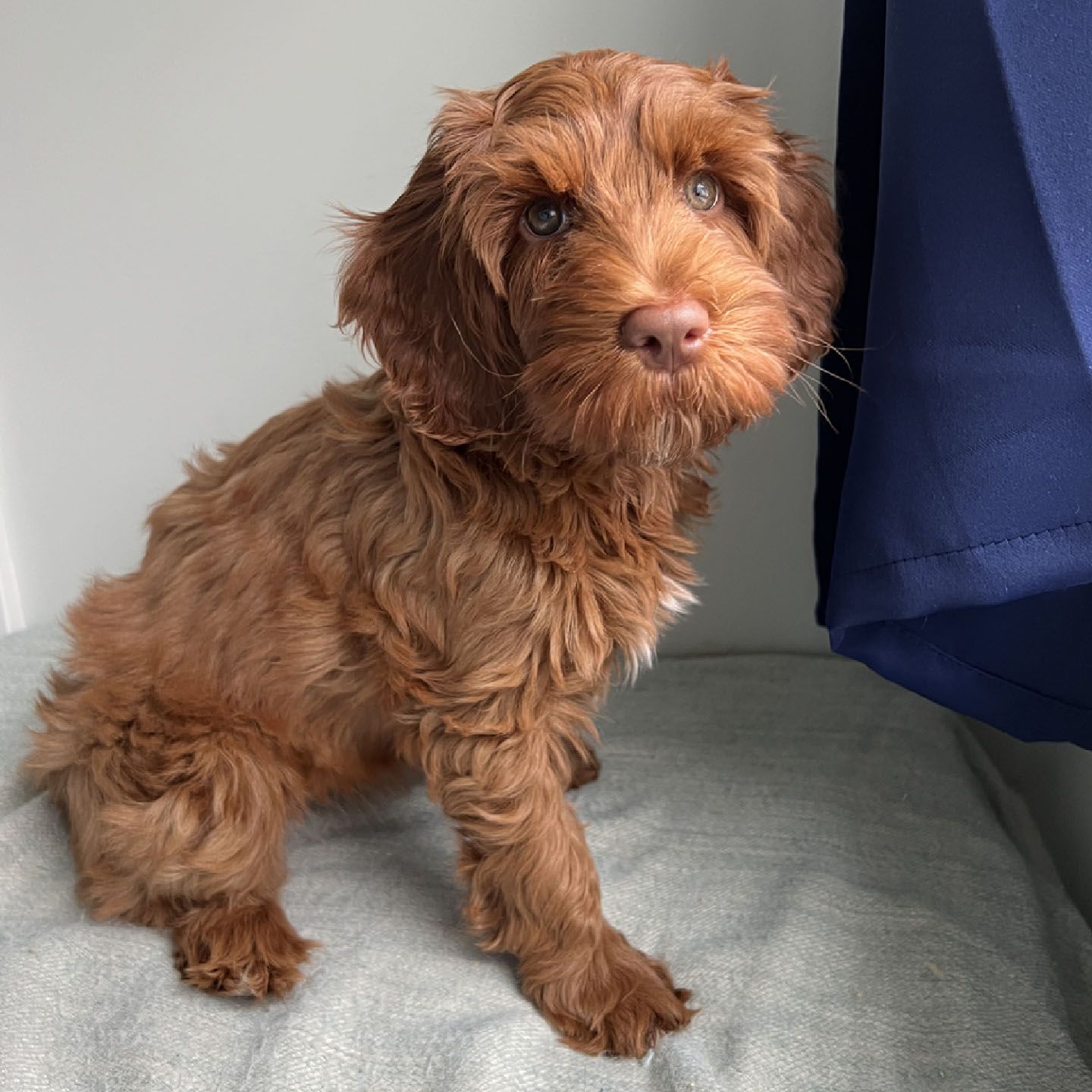 Our stunning girl Penny is currently available to a guardian family. Penny arrived on November 13th, 2025. She will mature to small Medium size, approximately 25-30 pounds. She is gentle, intuitive, and eager-to-please. She loves to make eye contact to connect with her humans, and she loves to snuggle and roll over for tummy rubs. Penny is doing well with her manners, house, and kennel training, and she will excel in all training classes!