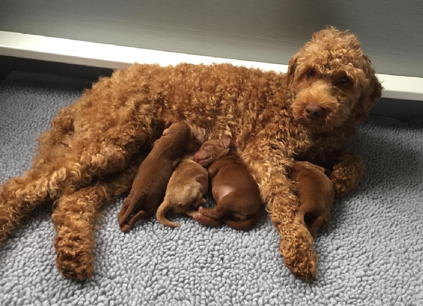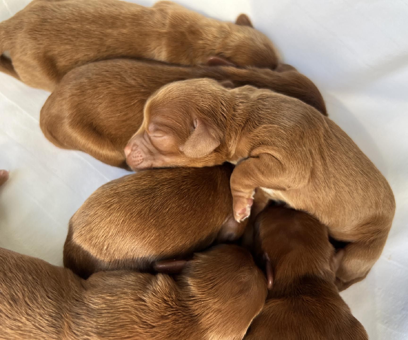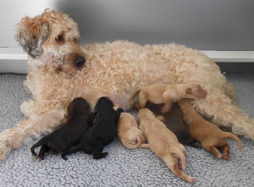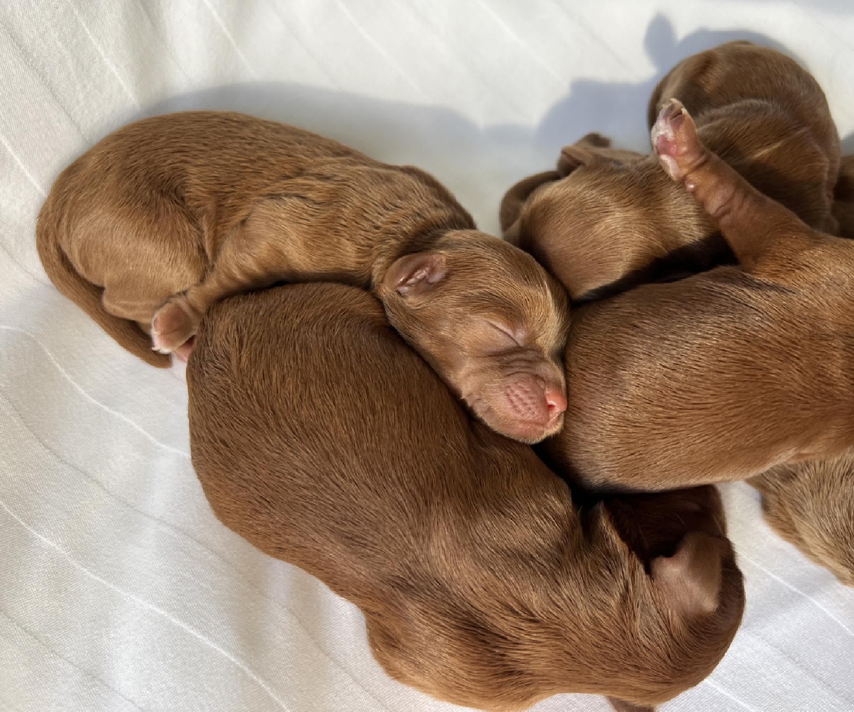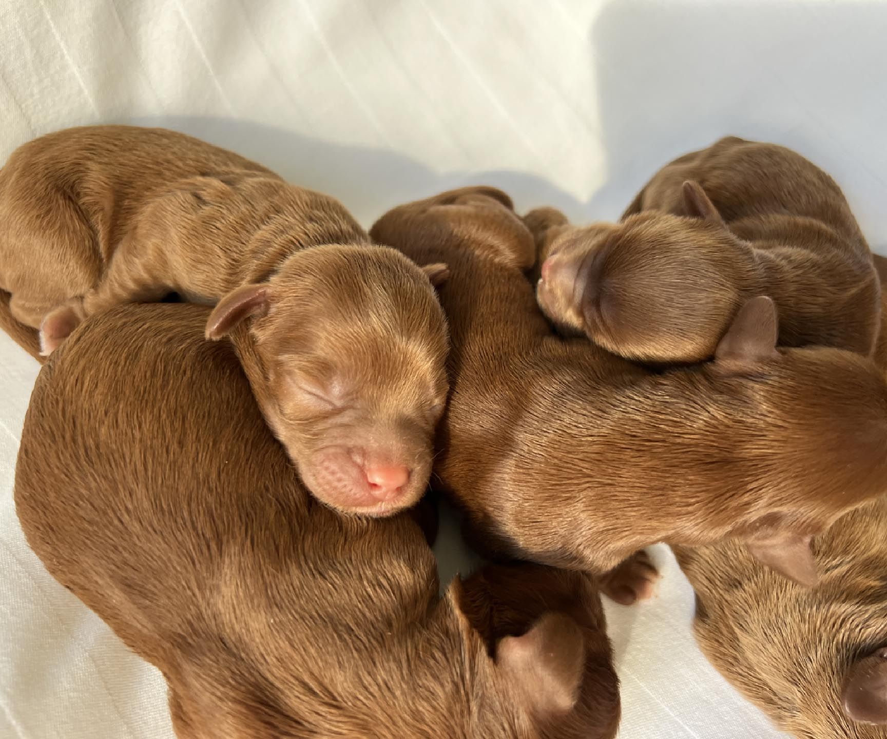 It's time to celebrate at Maine Light! Our stunning Maine Light Rolling River x Shaggy Moose Tracks puppies arrived on November 13th, 2025! In honor of the parents and our gorgeous Maine rivers, we give a hearty hello to our four sweet girls - Penobscot (Penny), Saco, Nonesuch, and Merriland (Merri) and our two handsome boys Kennebec and Allagash! We are over the moon! The puppies all have gorgeous silky soft fleece coats in vibrant shades of Caramel Red/Apricot. The pups will mature to large Miniature and small Medium size (20-35 pounds), just right for action and snuggling in laps! Both River and Moose have incredibly gentle, sweet, and intuitive temperaments, and their puppies will follow suit! Our beautiful puppies will be ready to join their forever families on January 8th, 2026. For more information about this and future litters, please contact us!
