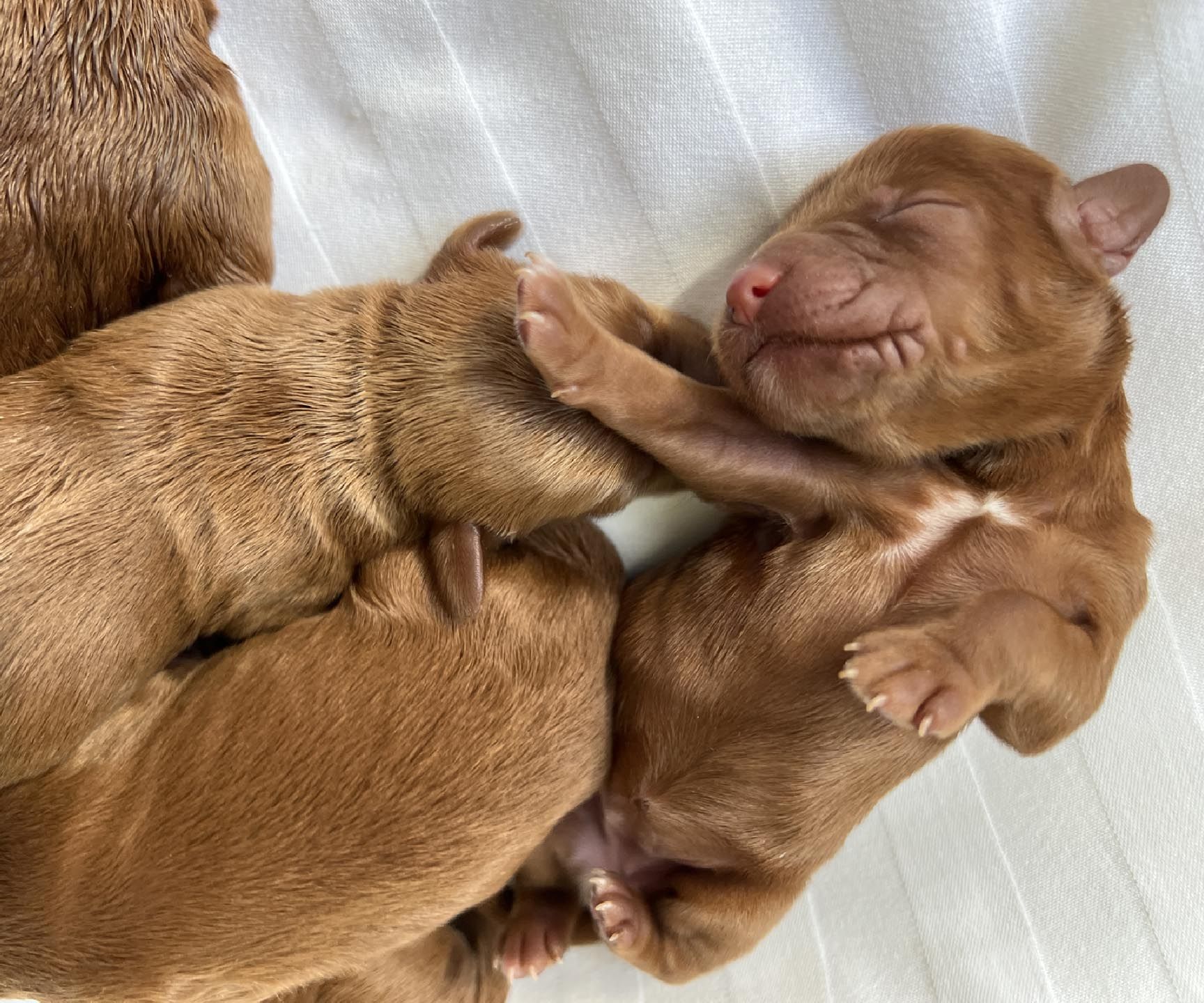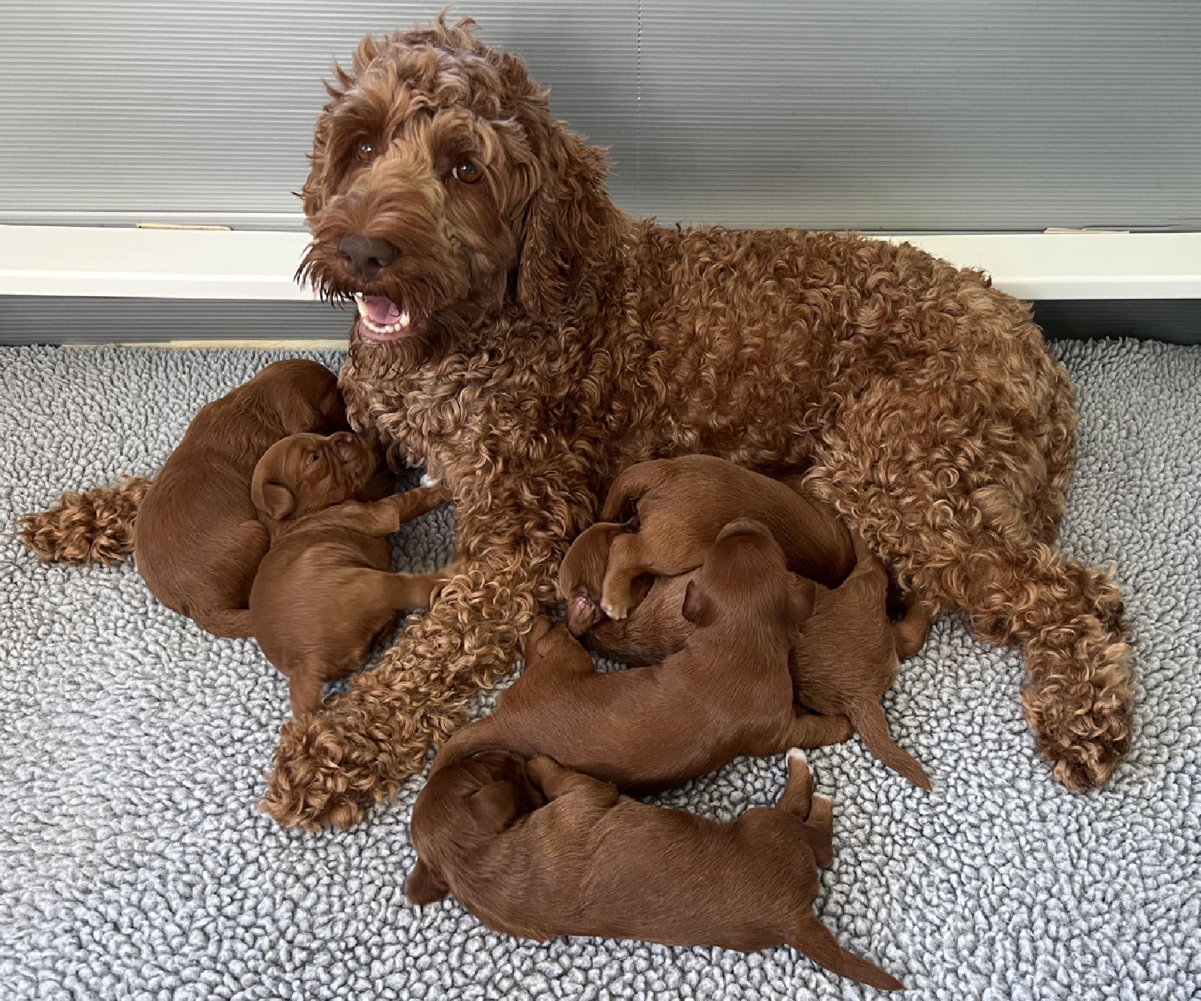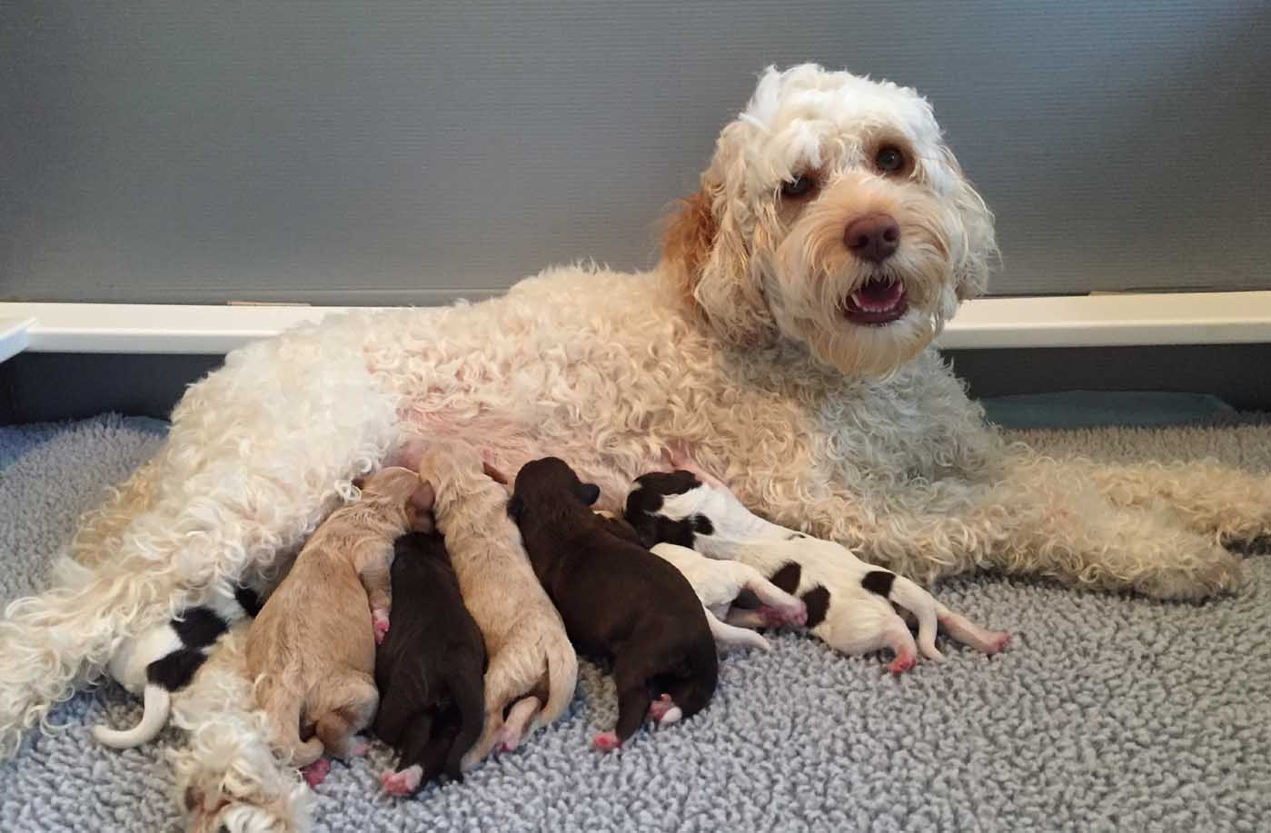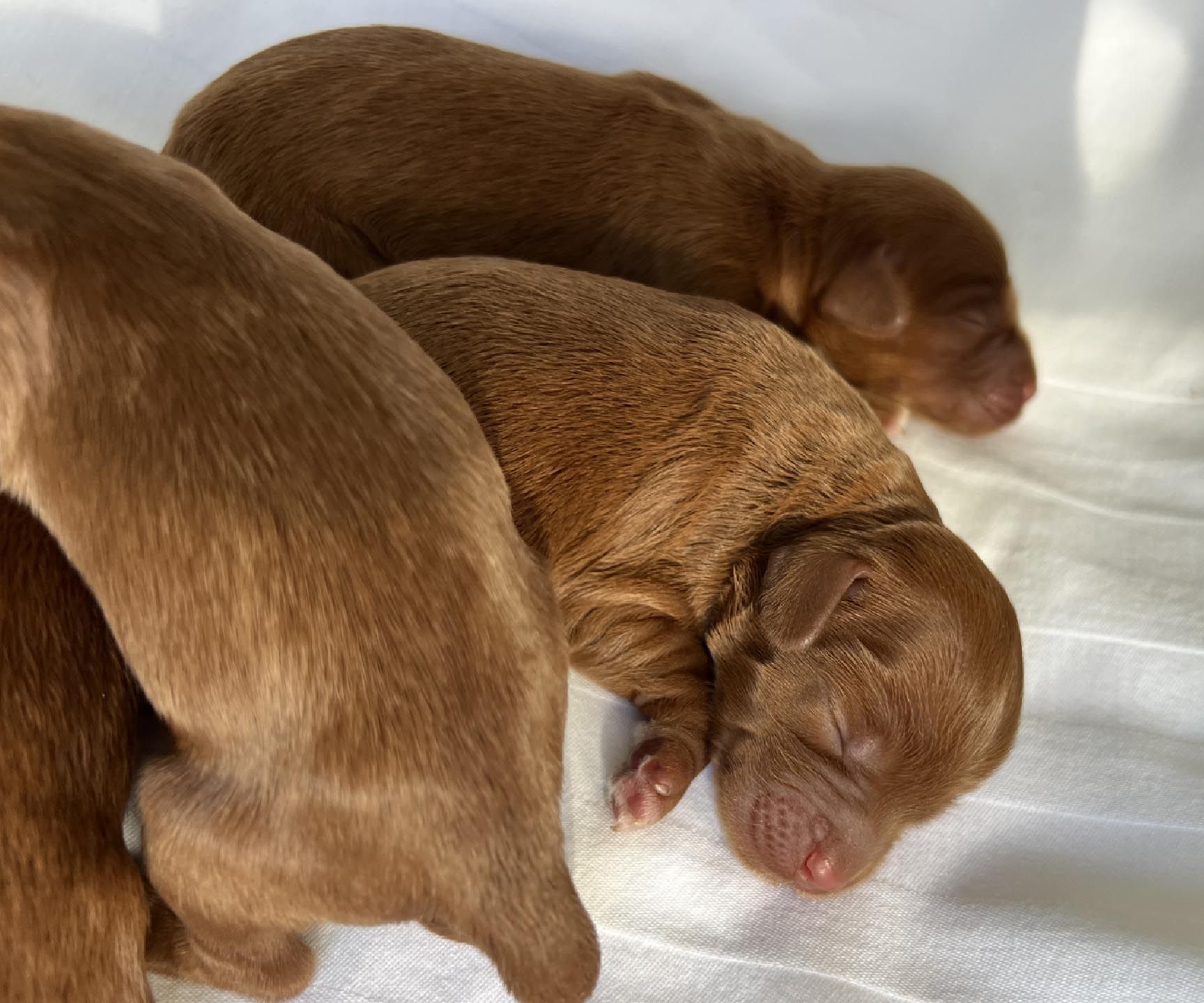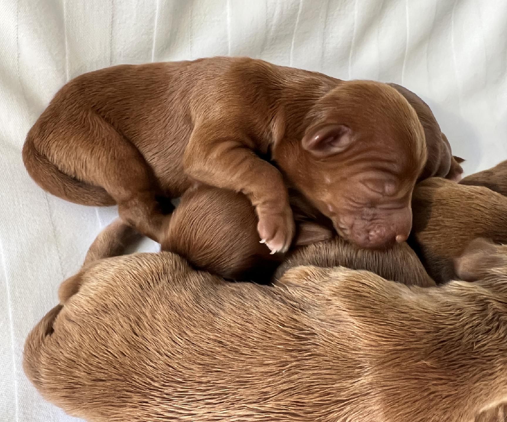 It's time to celebrate at Maine Light! Our stunning Maine Light Rolling River x Shaggy Moose Tracks puppies arrived on November 13th, 2025! In honor of the parents and our gorgeous Maine rivers, we give a hearty hello to our four sweet girls - Penobscot (Penny), Saco, Nonesuch, and Merriland (Merri) and our two handsome boys Kennebec and Allagash! We are over the moon! The puppies all have gorgeous silky soft fleece coats in vibrant shades of Caramel Red/Apricot. The pups will mature to large Miniature and small Medium size (20-35 pounds), just right for action and snuggling in laps! Both River and Moose have incredibly gentle, sweet, and intuitive temperaments, and their puppies will follow suit! Our beautiful puppies will be ready to join their forever families on January 8th, 2026. For more information about this and future litters, please contact us!